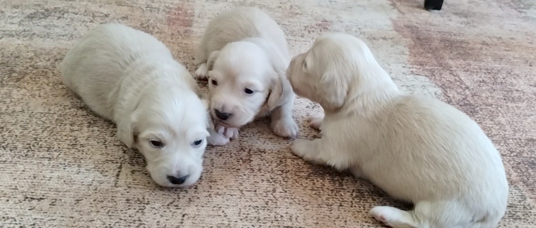 River had 4 babies on 2/25/26- 3 Cream Boys Available!